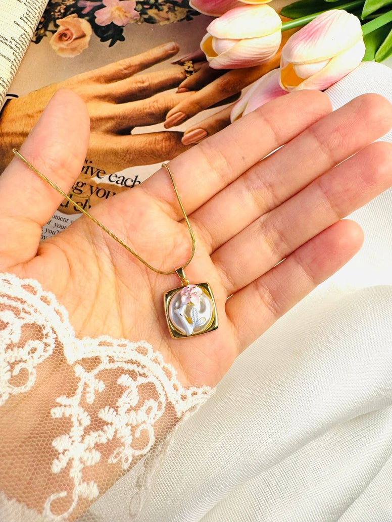 Square white flower necklace